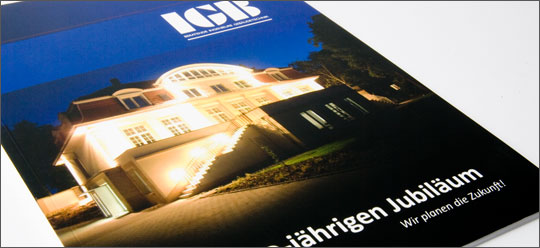 Nicht unseres, das liegt noch Dekaden in der Zukunft. Das etablierte Mannheimer Ingenieurbüro IGB nahm sein Jubiläum zum Anlass, eine bildgewaltige Festschrift drucken zu lassen. Design by rabenschwarm.