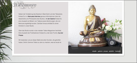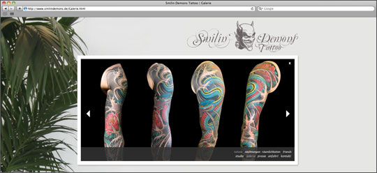 Bei der Gestaltung der Smilin Demons-Website war es unserem Kunden wichtig, dass das spezielle Ambiente seines Studios eingefangen wird. Selbstverständlich sollten daneben die Arbeiten des Künstlers perfekt zur Geltung kommen. → www.smilindemons.de